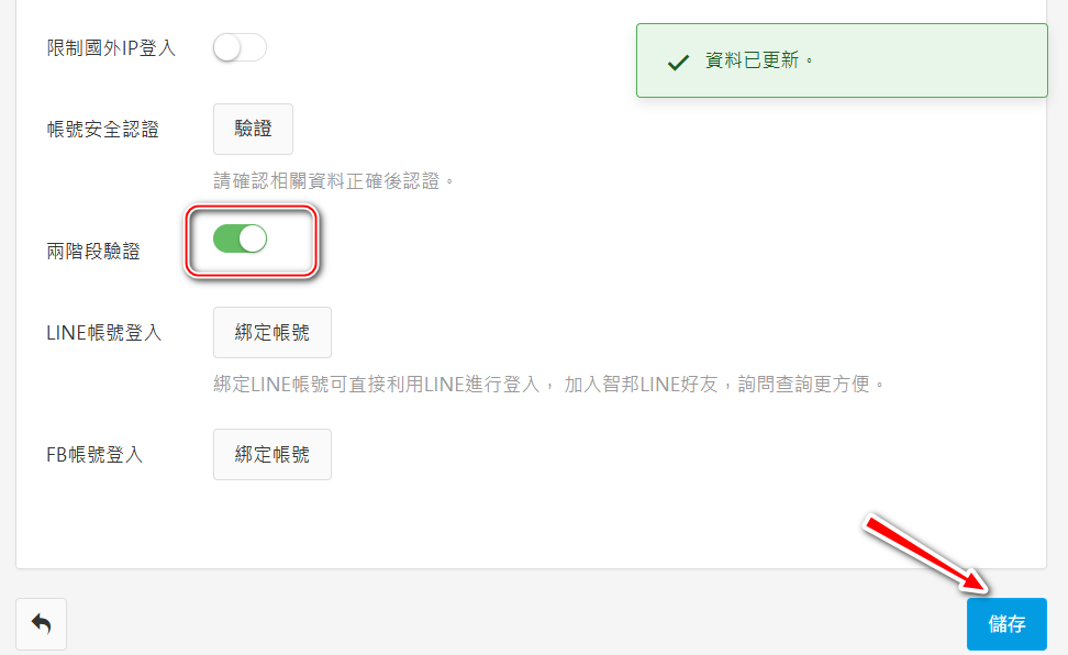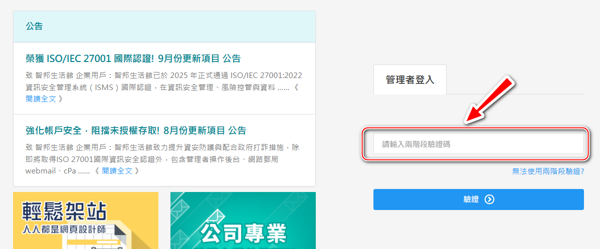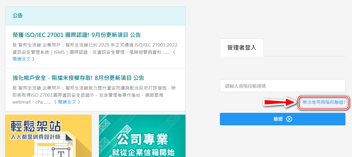 啟用兩階段驗證可有效防止帳號被盜用,建議管理者啟用此功能。