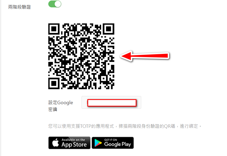 儲存設定後,系統會自動產生一個 QR Code,請保持此頁面開啟以便進行下一步驗證器綁定。