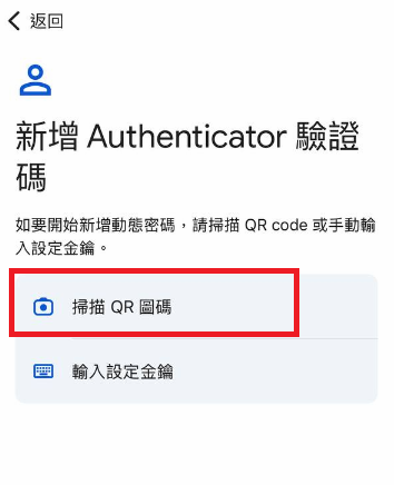 使用 Google Authenticator 掃描系統產生的 QR Code: